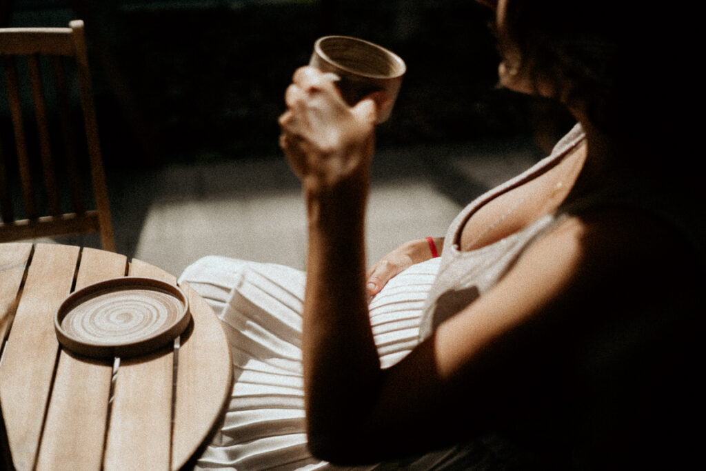 Ein Treffen an deinem Lieblingsort. Vielleicht dein Stammcafé, vielleicht ein kleiner Spaziergang durch deine Straße. Warm, entspannt, so, wie du bist. Raum für Nähe, für echte Augenblicke, für dich.